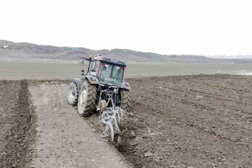 Bitlis’in Adilcevaz ilçesinde, baharın gelişiyle birlikte arpa ekim sezonu başladı.