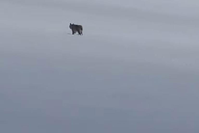 Bitlis’in Adilcevaz ilçesinde karla kaplı arazide bir vaşak görüntülendi.