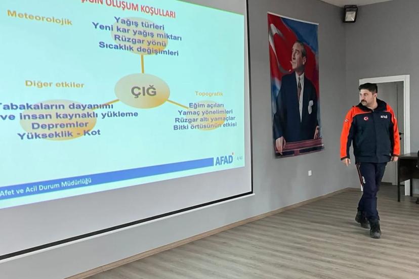 Erzincan İl Afet ve Acil Durum Müdürlüğü (AFAD) tarafından, bölgede etkili olan yoğun kar yağışları ve artan hava sıcaklıklarına bağlı olarak oluşabilecek çığ risklerine karşı farkındalık oluşturmak amacıyla "Çığ Farkındalık Eğitimi" düzenlendi.