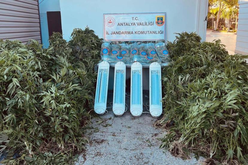 Antalya İl Jandarma Komutanlığı ekipleri, Antalya Cumhuriyet Başsavcılığı talimatları doğrultusunda Aksu ilçesinde uyuşturucuyla mücadele kapsamında bir şüpheliye ait ev ve eklentilerde arama yaptı. Aramalarda 23 kilo 950 gram skunk uyuşturucu madde, 356 kök skunk bitkisi, 1 termometre, iklimlendirmede kullanılan 4 ısıtıcı, 1 hassas terazi ile suçtan elde edildiği değerlendirilen döviz ele geçirildi. Şüpheli hakkında adli işlem başlatıldı.