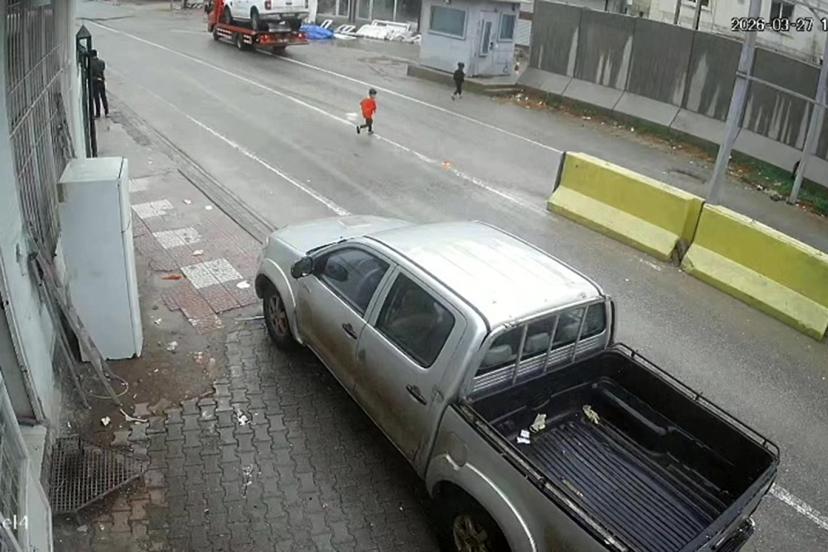 sürücünün yaptığı ani manevra ile kamyonetin altından kalmaktan son anda kurtulan çocuğun görüntüleri, bölgedeki bir güvenlik kamerasına anbean yansıdı.