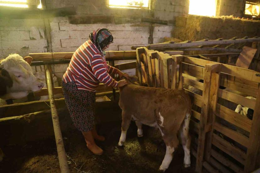 Elazığ’ın Sugözü Mahallesi’nde hayvancılıkla geçimini sağlayan İlhan Cömert’in büyükbaş hayvanı doğum yaparken öldü. Yeni doğan buzağıyı ilk başlarda soğuktan üşümesin diye evinde besleyen Cömert, bir süre sonra büyükbaş hayvanlarının bulunduğu ahıra aldı. Buzağıyı kendi çocuklarından ayırt etmeyen aile, sabah uyanır uyanmaz kendi hayvanlarından sağdıkları sütü buzağıya içirdikten sonra tımarını yapıyor. İlhan Cömert, buzağı kendini toparlayana kadar elleriyle besleyeceklerini belirtti. Cömert, "Bir ay önce buzağımızın annesi doğarken öldü. Biberonla besliyoruz. Hayvan elimizde ölmesin diye diğer hayvanlardan sağdığımız ve dışarıdan aldığımız sütle besliyoruz. Sabah kalktığımızda 3 çocuğum var, buzağıyı da bizim çocuklarımızın yerine koymuşuz. Sabah hemen koşup karnını doyuruyoruz. Sütünü verip tımarını yapıyoruz. Hayvancılığı seviyoruz ama zorlukları da çok fazla. Onu görmesek olmuyor. Buzağı bizim maskotumuz oldu" dedi.