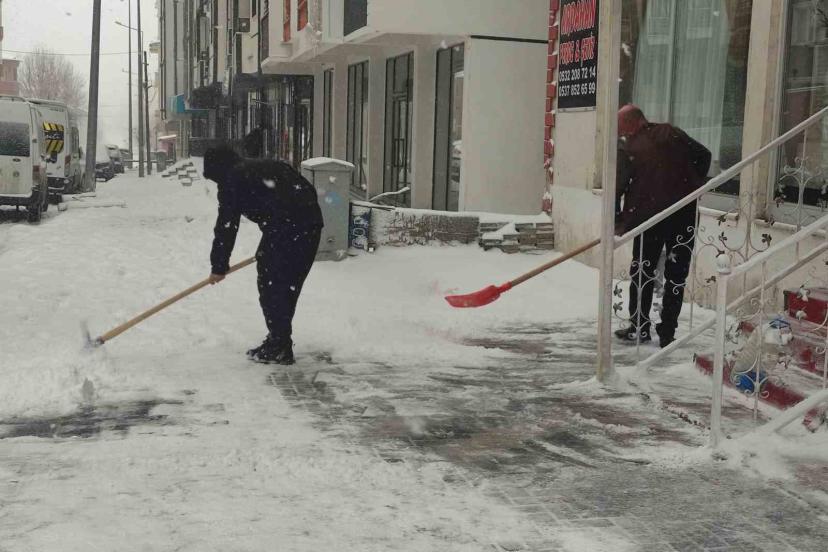 Gece saatlerinde etkili olan kar yağışının ardından sabahın erken saatlerinde cadde ve sokaklar beyaza büründü. Kent merkezinde kar kalınlığının artmasıyla birlikte esnaf, işyerlerinin önünde biriken karı temizlemek için harekete geçti.