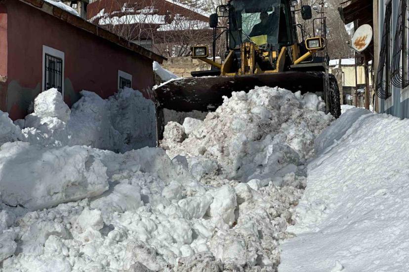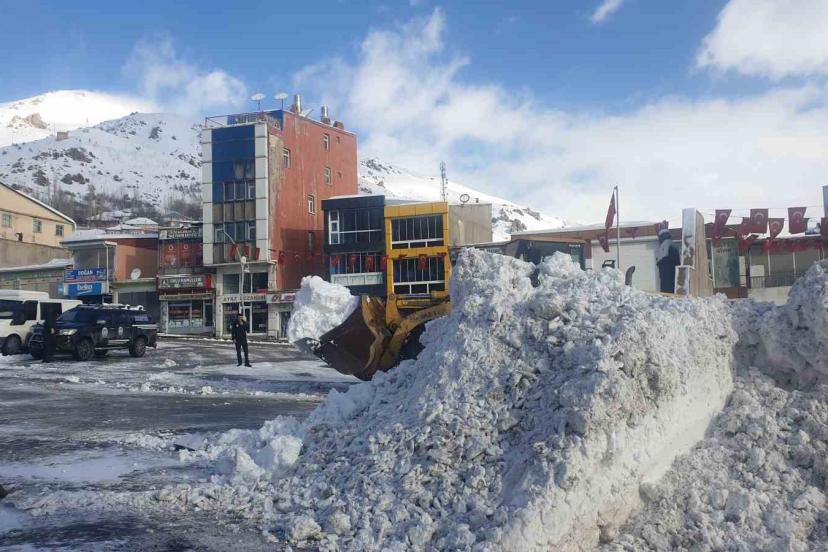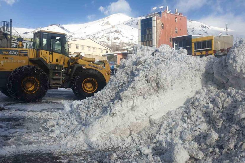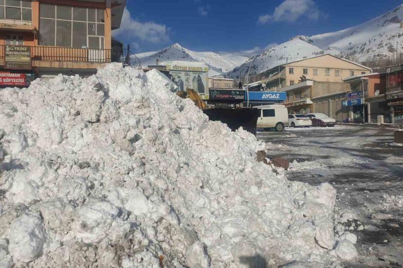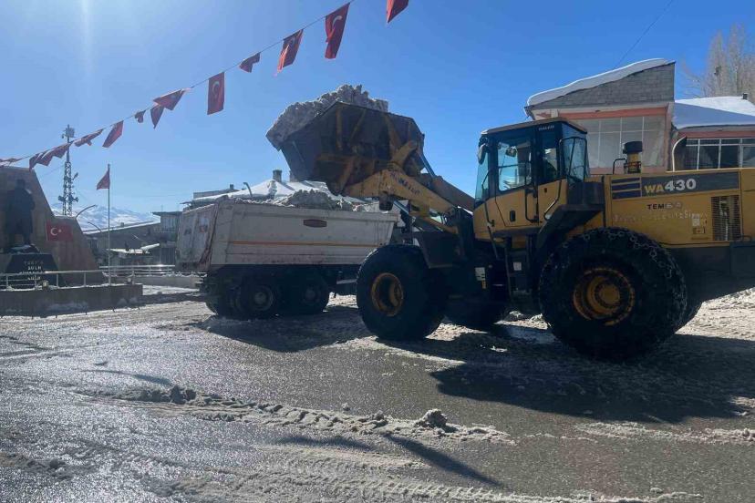 Belediye ekipleri kar yığınlarını kamyonlarla ilçe dışına taşımaya devam ediyor.