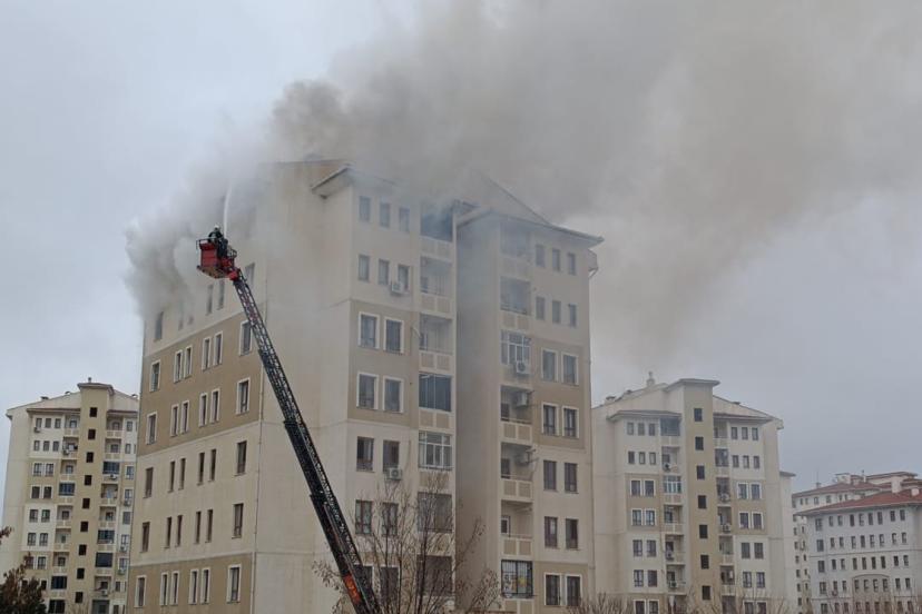 Ekipler hem yangına müdahale ediyor hem de binada mahsur kalan vatandaşları kurtarmak için çalışma yürütüyor.