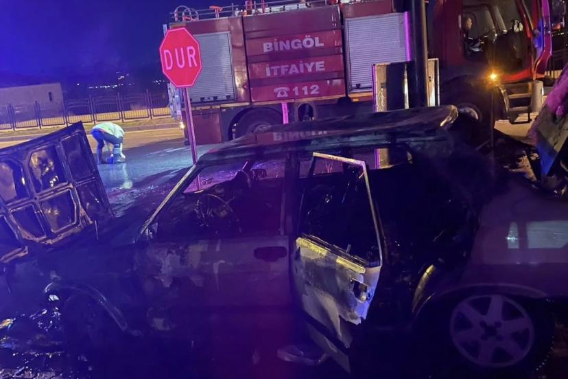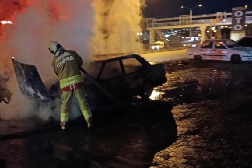 Bingöl’de park halindeyken alev topuna dönen otomobil, itfaiye ekipleri tarafından söndürüldü.
