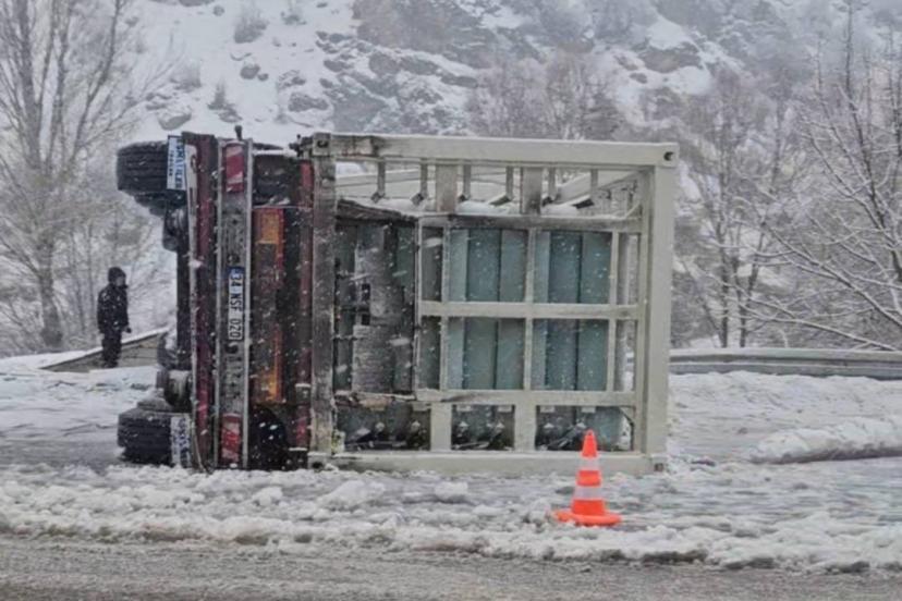 Bingöl’de tır devrildi: 1 yaralı