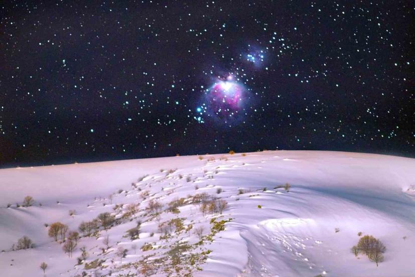 Bitlis’te karlı dağlarda eksi 4 derece soğukta gerçekleştirilen 4 saatlik çekim sonucunda, yaklaşık 1500 ışık yılı uzaklıkta bulunan Orion bulutsusu dağların zirvesiyle net şekilde görüntülendi.