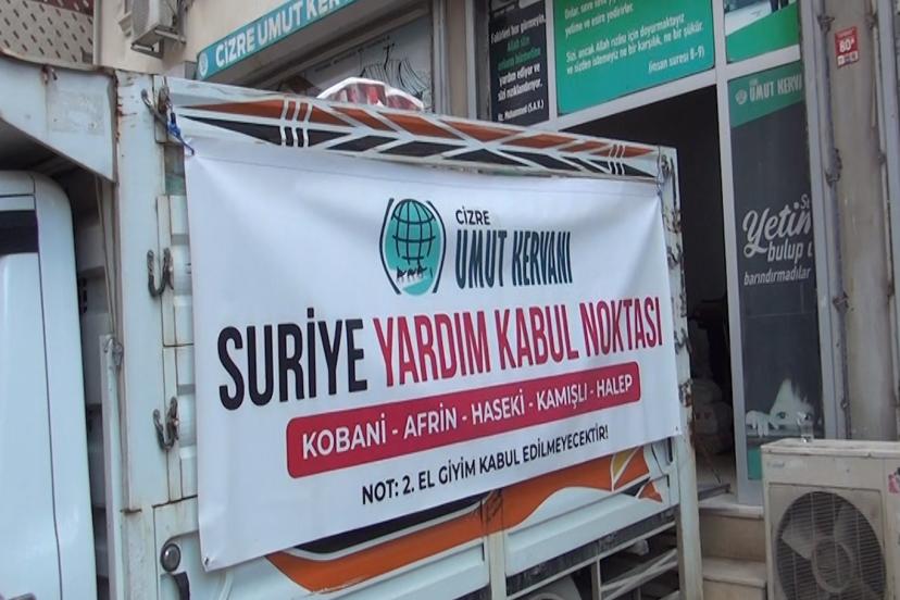 Cizre Umut Kervanı Derneği tarafından dernek binasında Suriye için yardım kabul noktası kuruldu. Cizrelilerin kendilerine getirdiği insani yardım malzemeleri Suriye'deki ihtiyaç sahiplerine ulaştırılmak üzere yola çıktı.