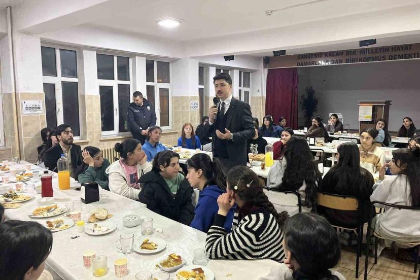 Okul yönetimi, öğretmenler ve öğrencilerin katılımıyla düzenlenen iftar programında Kaymakam Kahraman, öğrencilerle aynı sofrayı paylaşarak gençlerle yakından ilgilendi. İftar öncesinde öğrencilerle sohbet eden Kaymakam Kahraman, onların eğitim hayatına dair hedeflerini, beklentilerini ve taleplerini dinledi. Kahraman, samimi bir ortamda gerçekleşen buluşmada gençlerin görüş ve önerilerine büyük önem verdiğini ifade etti.