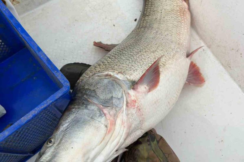 Elazığ’da Keban Baraj Gölü’nde 1 metre uzunluğunda 30 kilo ağırlığında dev Fırat turnası yakalandı.