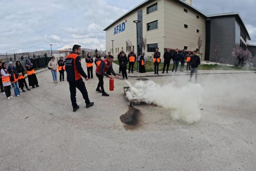 Elazığ İl Afet ve Acil Durum Müdürlüğü tarafından, afetlere karşı daha hazırlıklı bir toplum oluşturma hedefiyle yürütülen gönüllülük faaliyetleri kapsamında düzenlenen "Destek AFAD Gönüllüsü" eğitimleri aralıksız sürüyor. 5 gün sürecek yoğun ve kapsamlı programın ikinci gününde gerçekleştirilen eğitimlerde gönüllülere hem teorik hem de pratik bilgiler aktarıldı. Eğitim programı kapsamında; destek AFAD gönüllüsü saha eğitimi, afet farkındalık eğitimi, çadır kurulumu, yangın eğitimi, ilkyardım farkındalık eğitimi ve insani yardım eğitimi başlıklarında uygulamalı çalışmalar yapıldı.