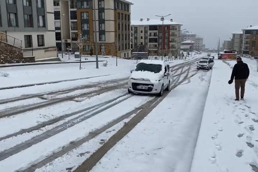 Elazığ’da sabah saatlerinde başlayan kar yağışı, trafikte sürücülere zor anlar yaşatmaya devam ediyor. Kentin farklı noktalarında bulunan rampa yollarda kalarak patinaj çeken araçlar anbean kameraya yansıdı. Bir süre bulundukları yerde mahsur kalan araçlar, ekipler tarafından yolların açılmasıyla yollarına devam etti.