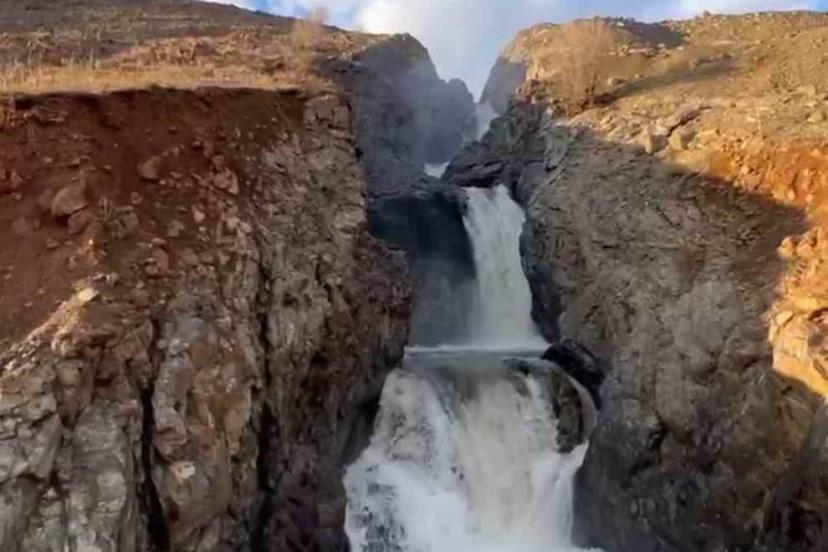 Elazığ’da yağışlar sonrası şelale coştu