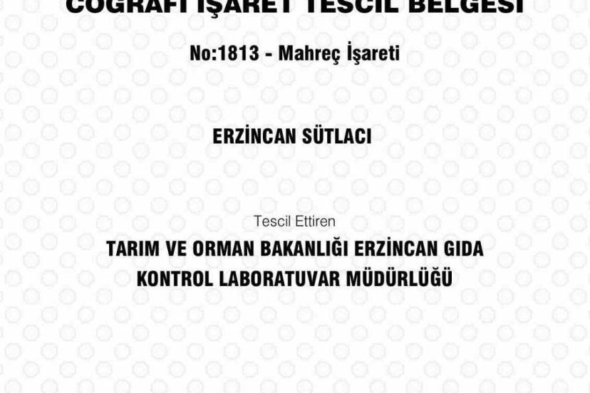 Erzincan’ın yöresel lezzetleri arasında yer alan "Erzincan Sütlacı", Türk Patent ve Marka Kurumu tarafından coğrafi işaretle tescillendi.