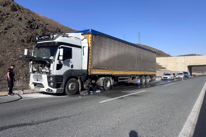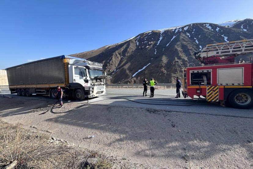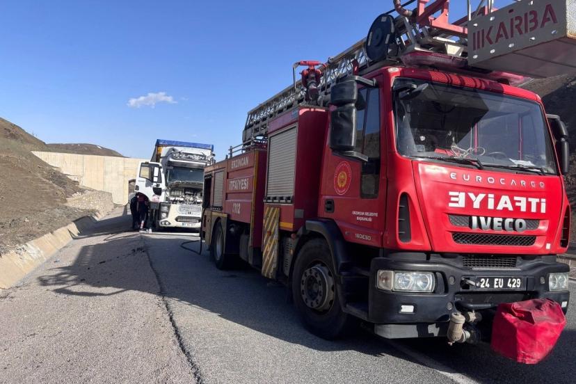 Erzincan’da seyir halindeki tırda çıkan yangın söndürüldü
