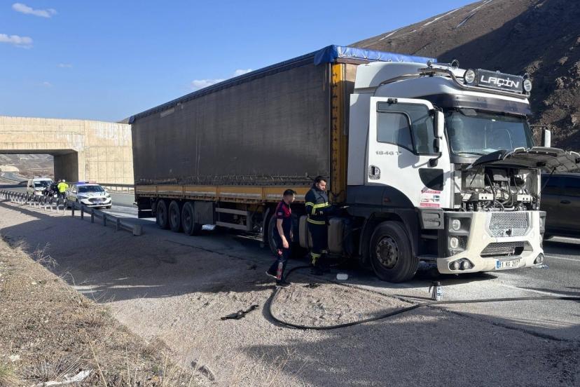 Erzincan-Sivas karayolunun Koçyatağı mevkisinde seyir halindeki bir tırda çıkan yangın, ekiplerin müdahalesiyle söndürüldü.