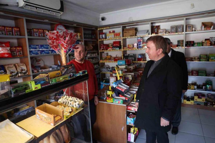 Erzincan Valisi Hamza Aydoğdu, beraberindeki kurum temsilcileriyle birlikte kent merkezindeki bakkalları ziyaret ederek, "zim...