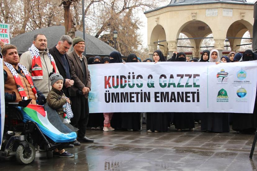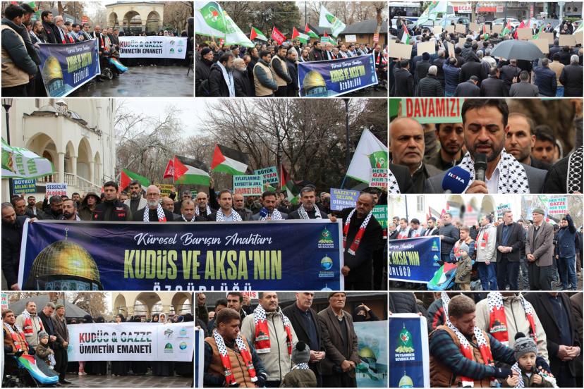 "Bugün burada sadece bir bölgenin değil, tüm insanlığın vicdan durağı olan Kudüs, Mescid-i Aksa ve Gazze’de yaşanan soykırıma dur demek; bu beldeleri elde etme adına siyonist yayılmacılığın küresel barışı nasıl bir uçuruma sürüklediğine dikkat çekmek ve İslam coğrafyasının dört bir yanında yakılan fitne ateşine karşı vahdeti haykırmak için toplanmış bulunmaktayız. Kudüs, yalnızca Filistin halkının değil, bütün Müslümanların ve bütün insanlığın ortak mirasıdır. Mescid-i Aksa ise Müslümanların ilk kıblesi ve mukaddes mabedlerinden biridir. Ancak bugün Kudüs, Mescid-i Aksa ve Gazze; siyonist işgal rejiminin sistematik saldırıları ve yayılmacı politikaları altında ağır bir kuşatma yaşamaktadır." dedi.