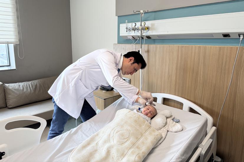 Gaziantep'te 45 günlük bir bebek, baş bölgesinde doğuştan bulunan ve kısa sürede hızla büyüyen tümör şehir hastanesinde başarılı bir şekilde ameliyat edildi.