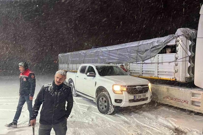 İl Müdürlüğü özellikle nakliye nedeniyle bölgede hayvanları araçlarda mahsur kalan üreticileri yalnız bırakmıyor. Tespit edilen araçlara personel desteği ile yem bırakılıyor.
