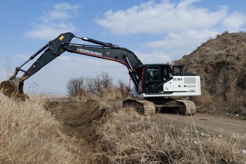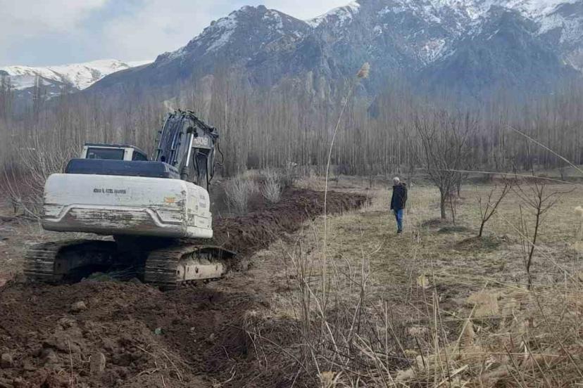 Iğdır İl Özel İdaresi ekipleri, Tuzluca ilçesine bağlı Gaziler ve Ağabey köylerinde toplam 20 kilometrelik sulama kanalında b...