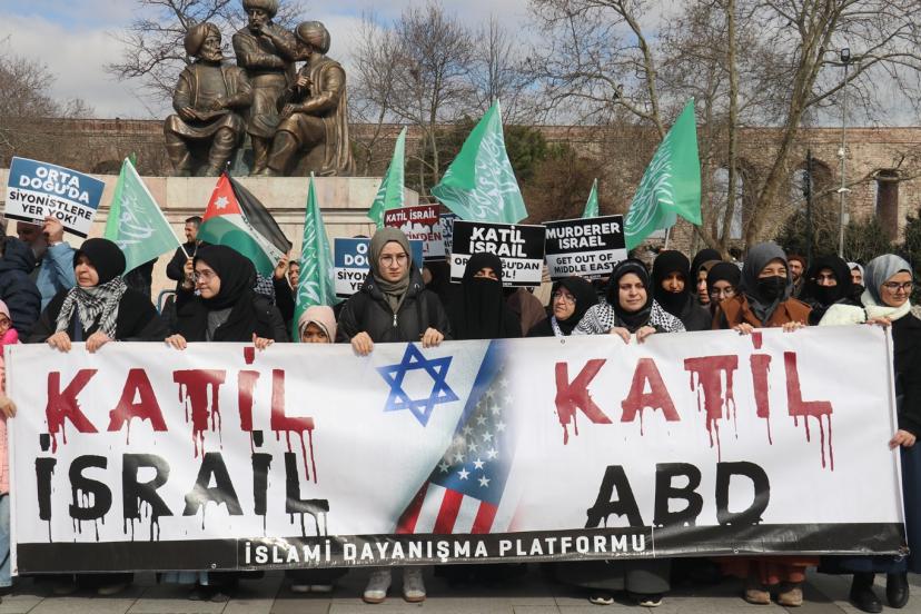 İslami Dayanışma Platformu, işgal rejimi ve Amerika'nın İran'a yönelik saldırılarını telin etmek amacıyla birçok sivil toplum kuruluşunun desteğiyle İstanbul'da protesto gösterisi düzenledi.
