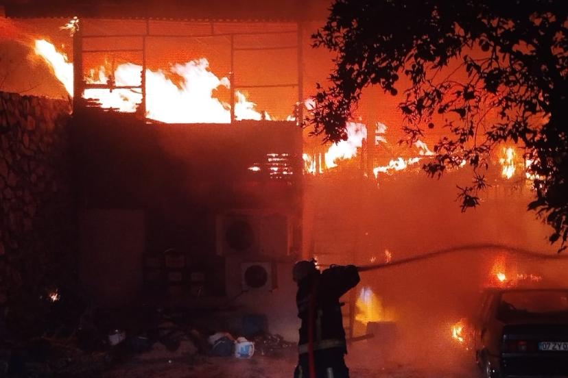 İşletmede yangın çıktı, alevler otomobile de sıçradı