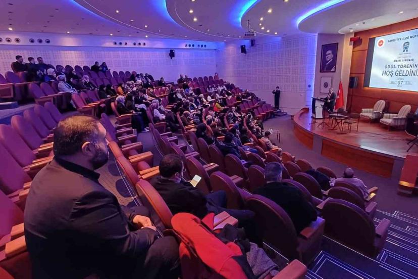 Yarışma kapsamında dereceye giren ve katılım sağlayan öğrenciler, protokol üyeleri tarafından ödüllendirildi. Dereceye giren eserlerin sahipleri ödüllerini İl Müftüsü Yaşar Çapçı ve İlçe Müftüsü Selim Şahin’in elinden aldı.
