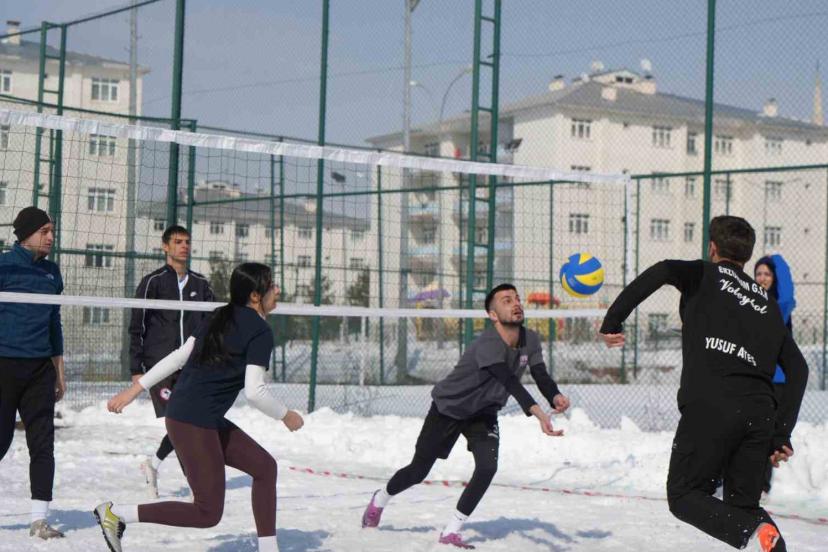 Kampüste kar voleybolu heyecanı