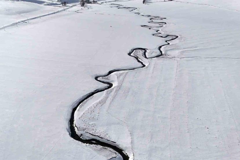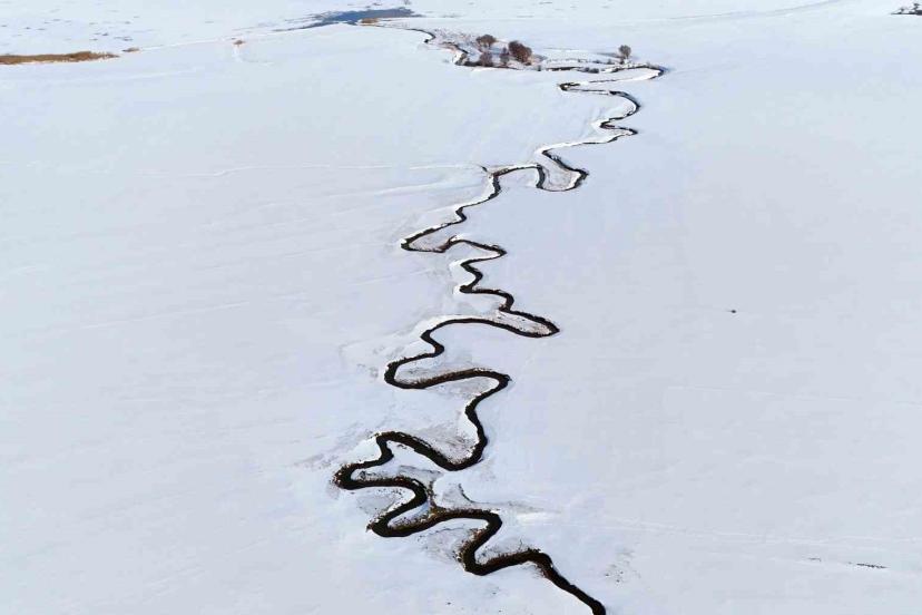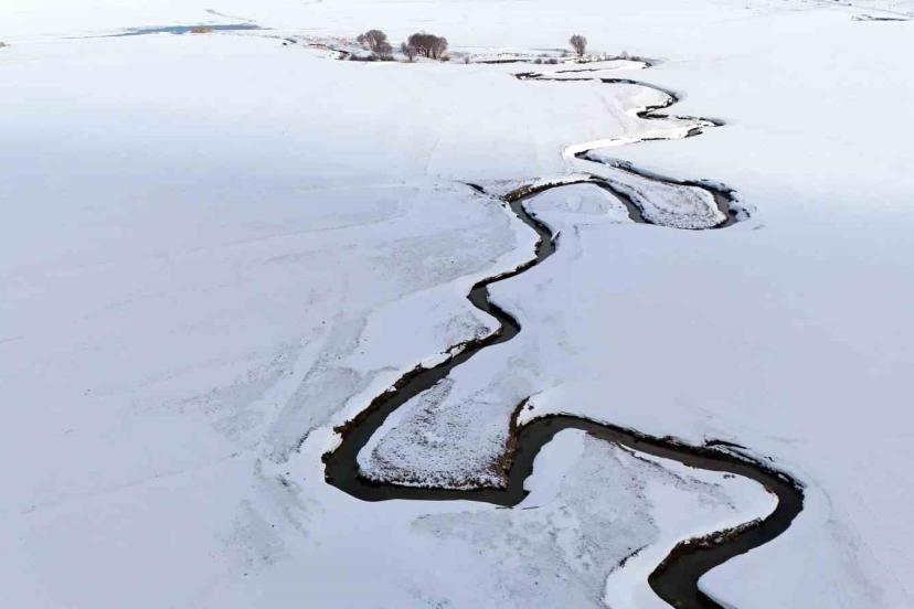 Kar altındaki menderesler güzel manzaralar oluşturuyor