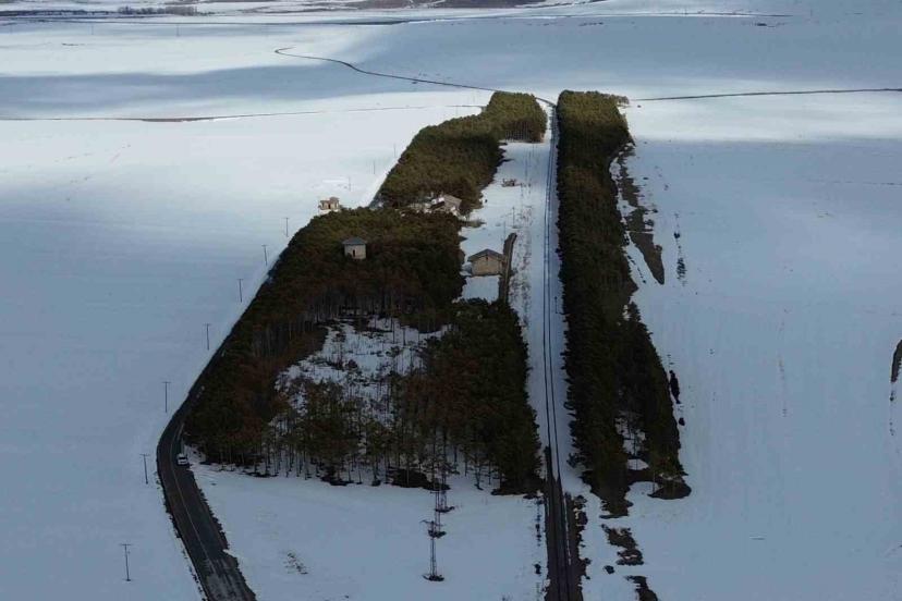 Bölgedeki geniş tarım arazileri de yoğun kar yağışından nasibini aldı. Bahar ekim sezonuna hazırlanan tarlalar, kalın kar tabakasıyla tamamen örtülerek adeta beyaz bir denizi andırdı. Havadan çekilen görüntülerde, karla kaplı arazilerin geometrik yapısı dikkat çekerken, doğanın sakinliği görenleri büyülüyor.