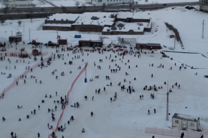 Kente merkezindeki El Aman Kayak Merkezi’nde kar yağışının ardından oluşan elverişli pist şartları; kayak, kızak ve snowboard tutkunlarını merkeze çekti. Aileleriyle birlikte gelen ziyaretçiler, hem kayak yaptı hem de kış manzarasının keyfini çıkardı. Kayak pistlerinde yaşanan yoğunluk havadan görüntülenirken, ortaya renkli ve hareketli görüntüler çıktı.