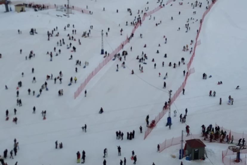 Kayak tesislerindeki yoğunluk havadan görüntülendi