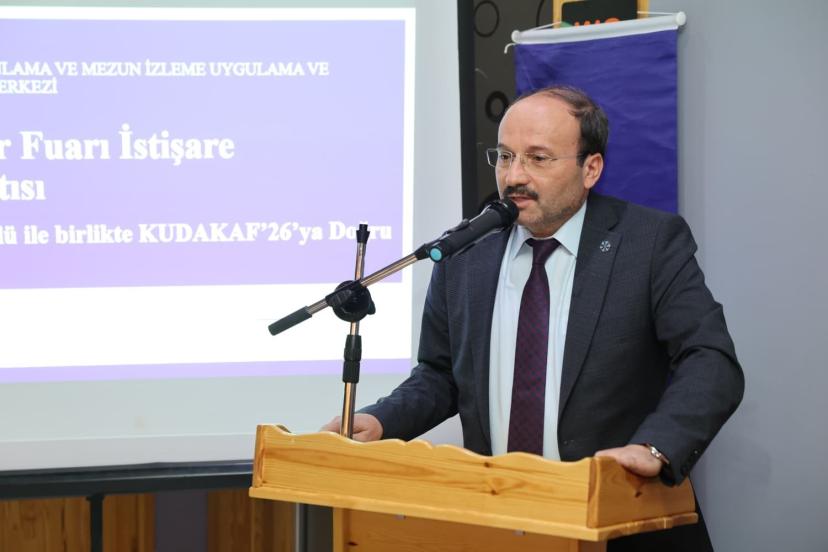 Program, fuardan sorumlu Rektör Yardımcısı Prof. Dr. Yüksel Göktaş’ın sunumuyla başladı. Sunumda KUDAKAF’26’nın katılım şartları, organizasyon süreci ve paydaş kurumların katkıları hakkında kapsamlı bilgiler paylaşıldı.