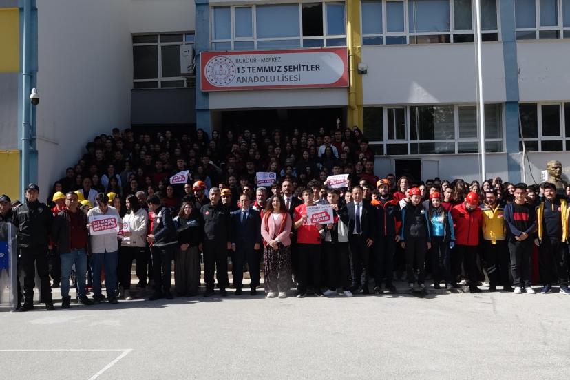BURDUR'da 1-7 Deprem Haftası dolayısıyla 15 Temmuz Şehitler Anadolu Lisesi'nde deprem tatbikatı gerçekleştirildi.