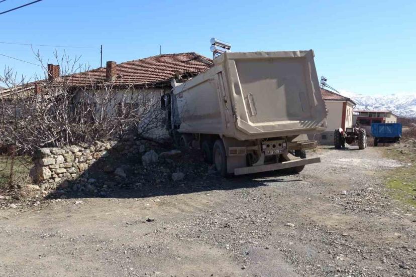Malatya’da freni boşalan hafriyat kamyonu eve girdi: 1 yaralı