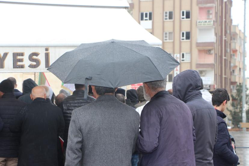Cuma namazının ardından Şakir Nuhoğlu Camii önünde gerçekleştirilen basın açıklamasını Peygamber Sevdalıları Vakfı Mardin Derneği Başkanı Fasih Memiş okudu.