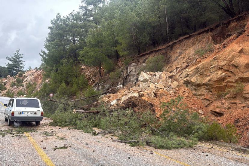 MUĞLA'nın Milas ilçesinde sağanak sonrası toprak kayması meydana geldi. Ekipler, kısmen kapanan yolu temizlemek için çalışma başlattı.