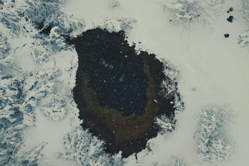 Muhteşem manzarada üç arkadaş kar yağışı altında gölette yüzdü