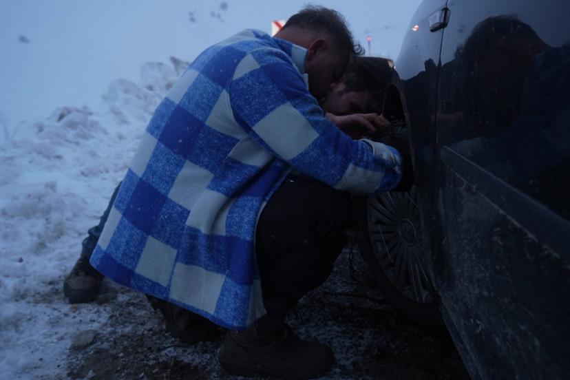 Sürücüler de kaygan zemin ve yoğun kar nedeniyle zor anlar yaşadı. Araçlarına zincir takarak ilerleyebilen sürücüler, dikkatli olunması konusunda uyarıldı.
