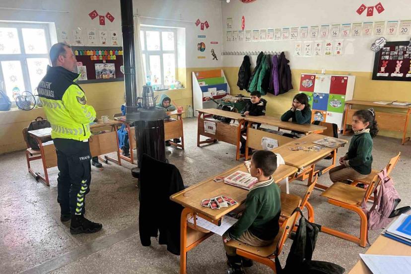 Muş’ta jandarma trafik ekipleri, Derecik Köyü İlkokulunda öğretmen ve öğrencilere yönelik trafik güvenliği eğitimi düzenledi.