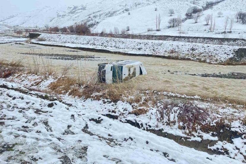 Muş’un Korkut ilçesinde kar yağışı nedeniyle kayganlaşan yolda kontrolden çıkan minibüsün dereye uçması sonucu 8 kişi yaralandı.