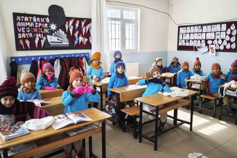 Niğdeli kadınların bir araya gelerek ördükleri atkı, bere ve eldivenler Bitlis’in Ahlat ilçesindeki köy çocuklarına ulaştırdı.