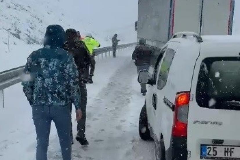 Erzincan’da etkili olan yağışlı hava, yüksek kesimlerde yerini kara bıraktı. Yoğun kar yağışı ve tipi nedeniyle Erzincan-Sivas kara yolu ulaşıma kapandı.
