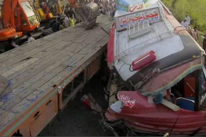 Kurtarma ekipleri 1122'ye göre, kaza, doğu Pencap eyaletinden güneydeki liman kenti Karaçi'ye giden otobüsün, ağır beton kirişler taşıyan bir treylere çarpması sonucu Khairpur bölgesinde meydana geldi.