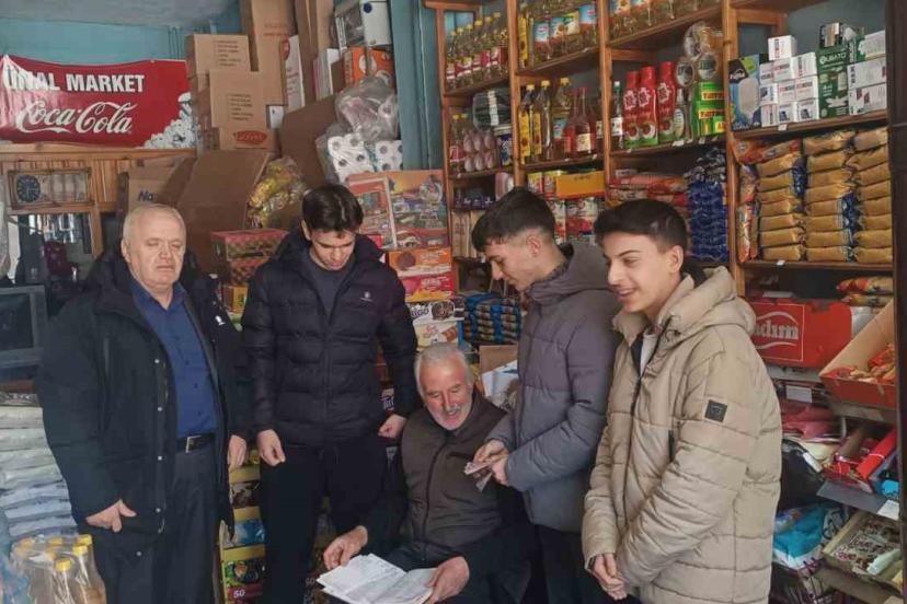 Öğrenciler, Kavakkapı Mahallesindeki bir bakkala uğrayıp veresiye defterini kapattılar.