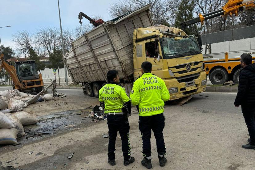 Kaza, Konak Mahallesi Diyarbakır Caddesi'nde meydana geldi. Edinilen bilgilere göre, 63 AEE 079 plakalı tır, sürücüsünün direksiyon hakimiyetini kaybetmesi sonucu devrildi.