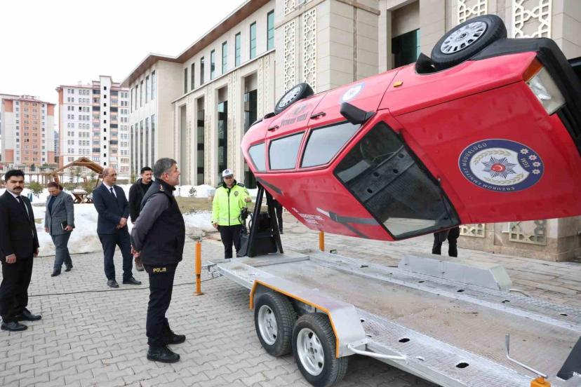 Erzurum İl Emniyet Müdürü Onur Karaburun, Trafik Denetleme Şube Müdürlüğü tarafından emniyet kemeri kullanımının hayati önemine dikkat çekmek amacıyla hazırlanan simülasyon aracını yerinde inceledi.
