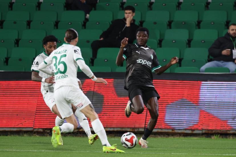77’nci dakikada Bodrum FK atağında Obekpa’nın vuruşunda top kaleci Sinan’da kaldı.